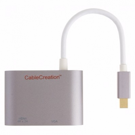 CABLE CREATION CD0168 Mini DP转VGA/HDMI二合一转换器 4K×2K 铝合金迷你DisplayPort适配器 Mac接电视投影