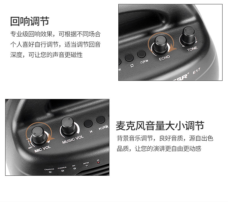 得胜(TAKSTAR)E17便携式无线扩音器 大功率广场舞户外手提音响 移动教学教师培训喇叭音箱 典雅黑